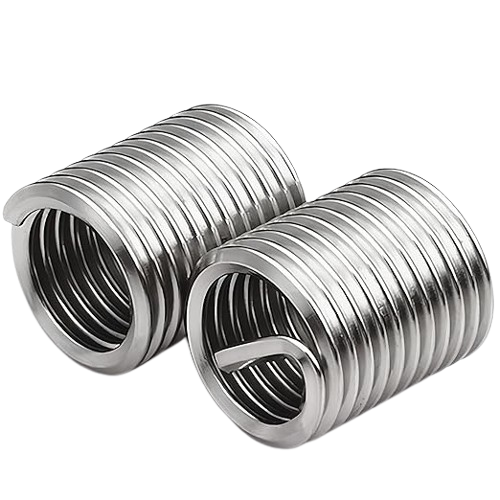 A helicoil is a threaded insert made of stainless steel, used to repair or reinforce damaged threads in metal parts, providing a durable, strong threaded connection.