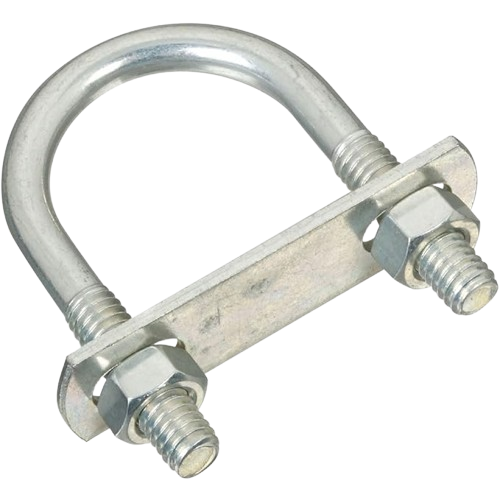 A U-bolt is a fastener shaped like the letter “U,” typically used to secure pipes or rods to a surface.